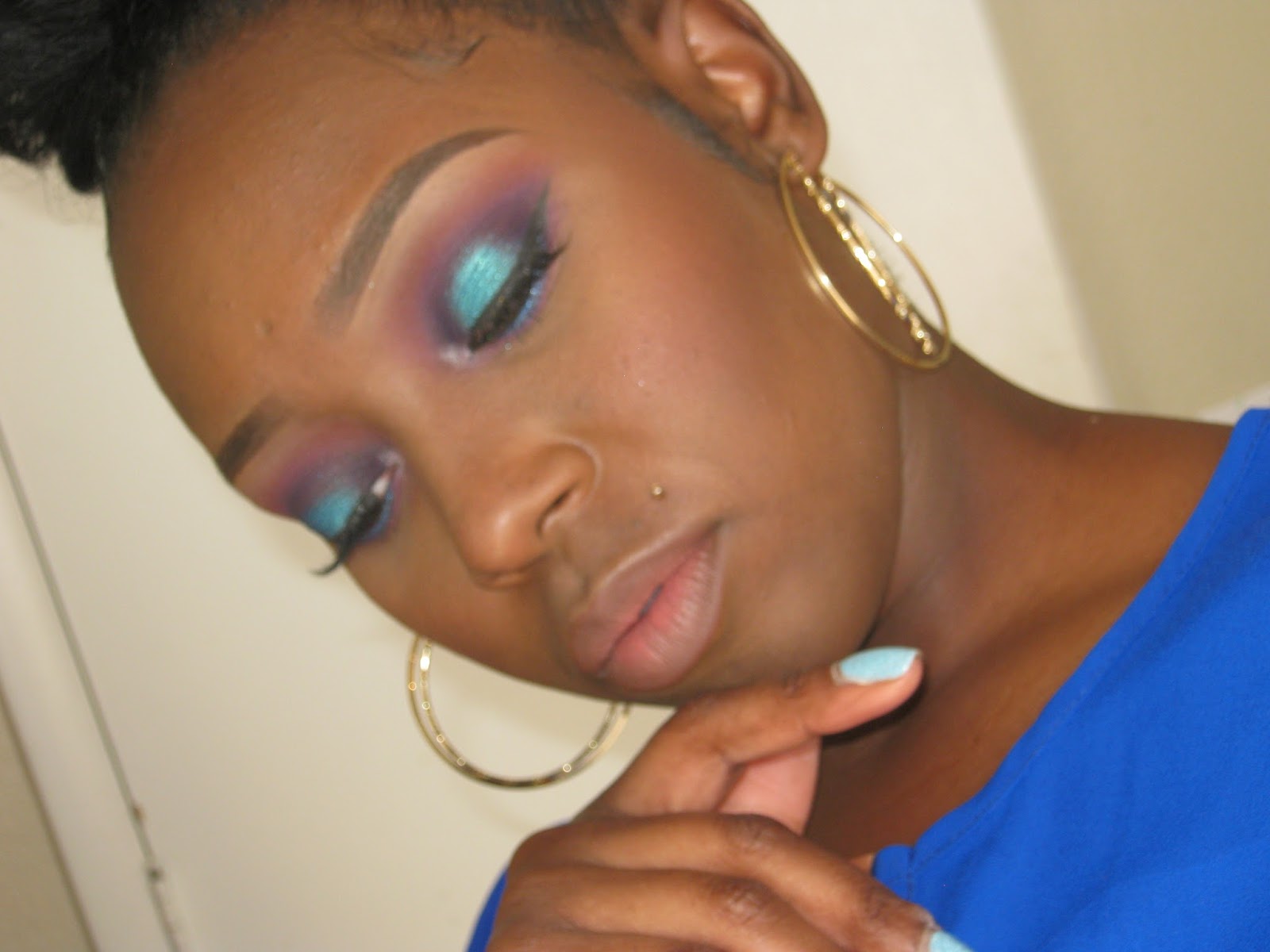 Today i did a purple and teal makeup look. Yes this is a very bright and bold look. But i was in the mood for some fun colors. And because it was so much going on with the eyes i did a matte nude lip.